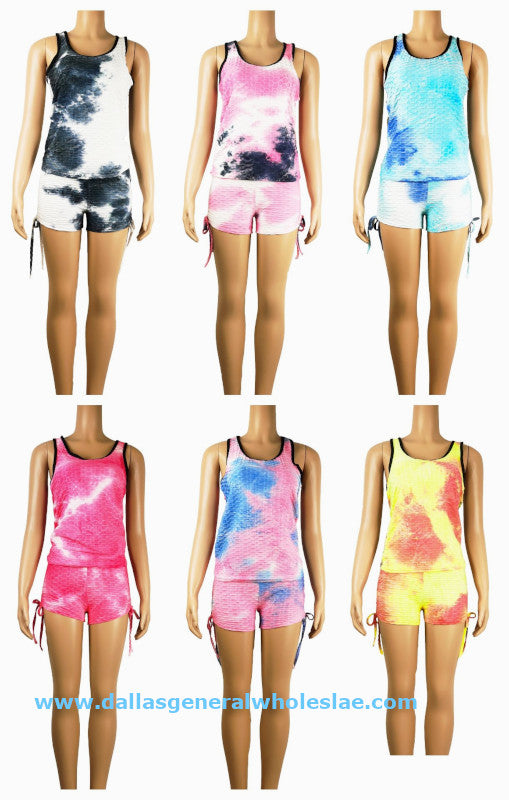 Ladies Casual Tie Dye Crop Top w/ Matching Leggings Wholesale