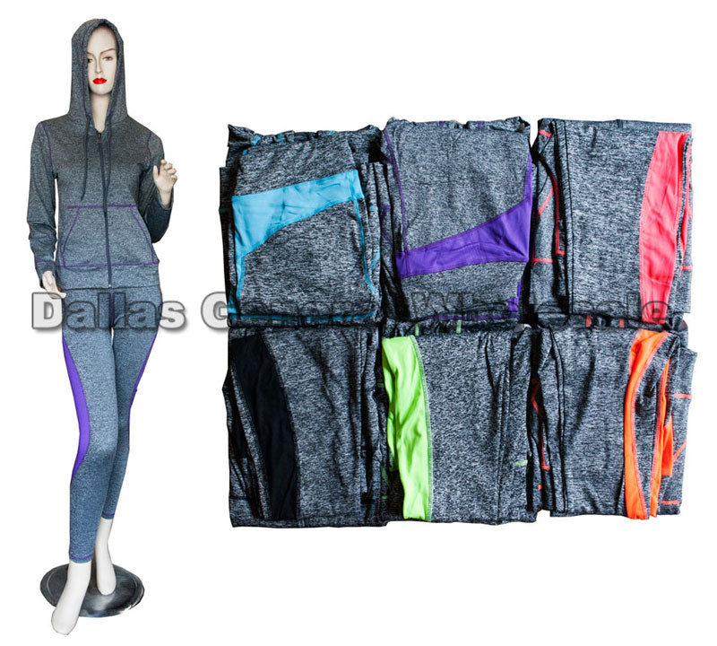 Ladies Active Long Sleeve Hoodie Top with Pants Set Wholesale