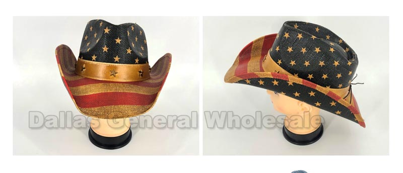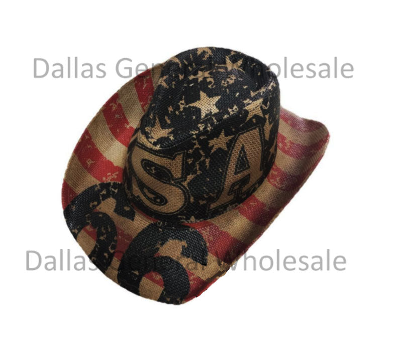 Burnt USA Flag Straw Cowboy Hats Wholesale