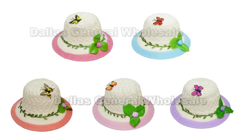 Little Girls Summer Butterfly Straw Hats Wholesale