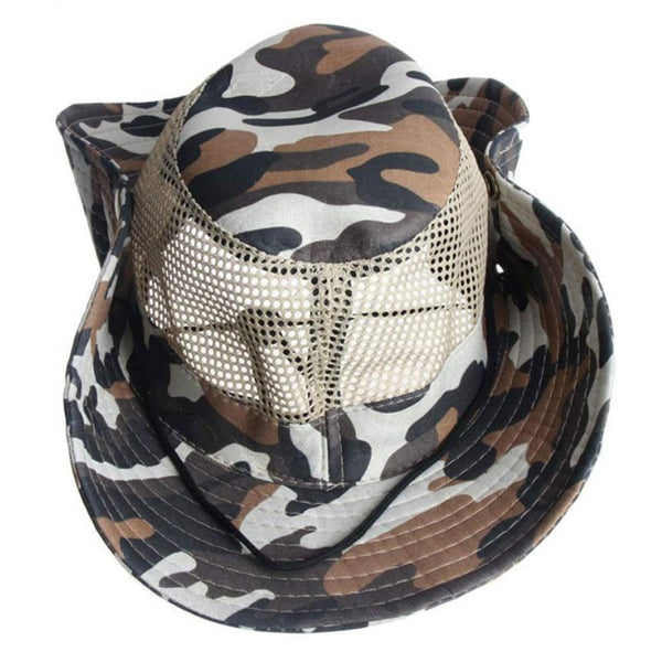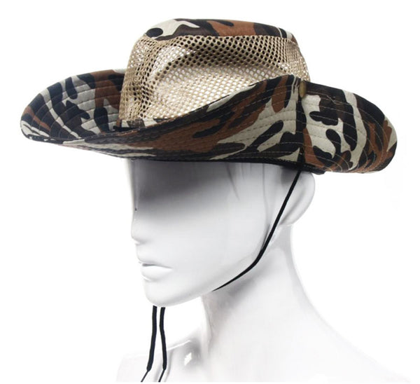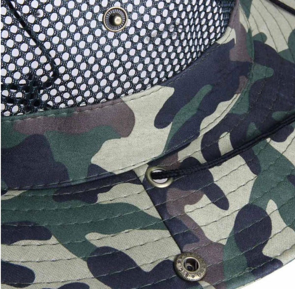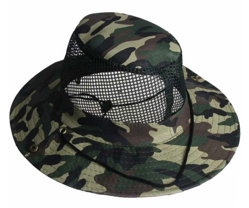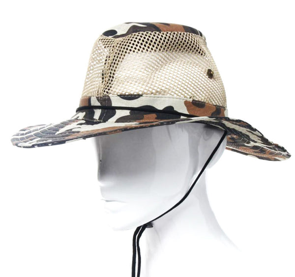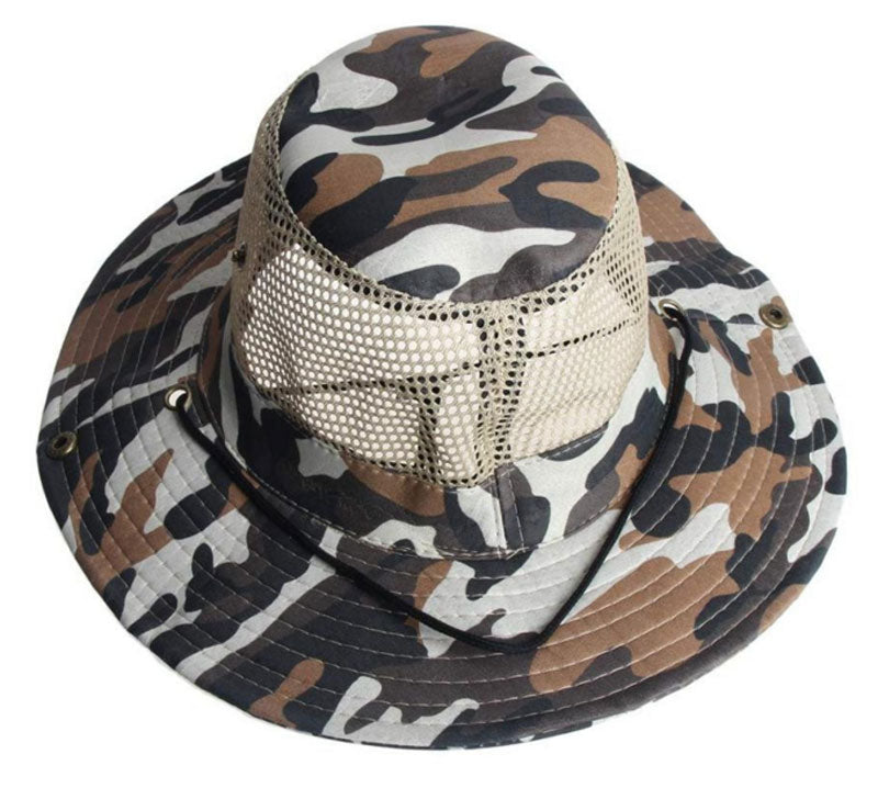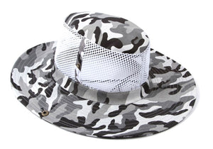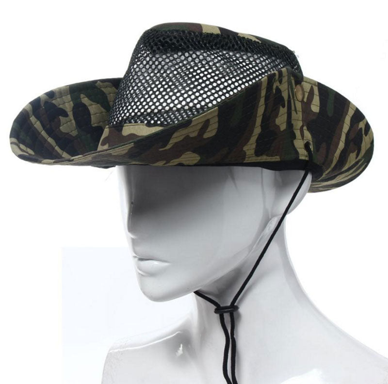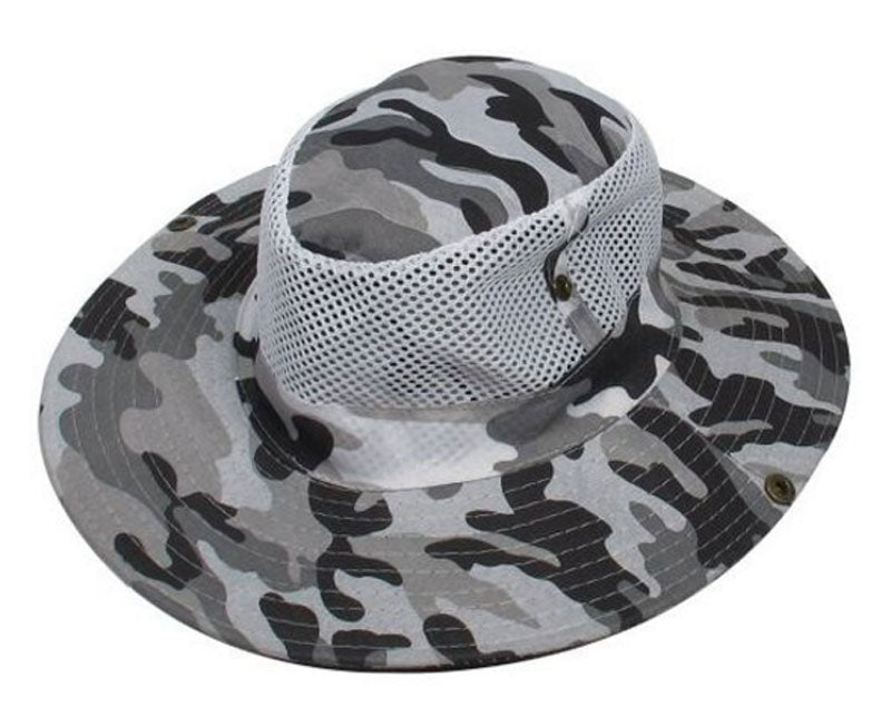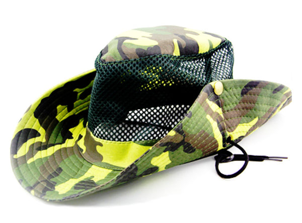 These camouflage mesh hats are easy to wear, just put them on and tighten by the attached straps. One size fits all. These Camouflage Mesh Boonie Hats can button up at the sides to make it into a cowboy hat looking. These Camouflage Mesh Boonie Hats are unisex but mostly appropriate as men summer hats.