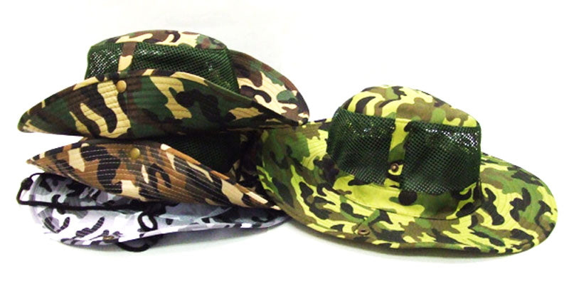 This bulk wholesale of Camouflage Mesh Boonie Hats are very competitively priced and popular item for your dollar store, general merchandise store, hat store, novelty store or flea market vendors. These Camouflage Mesh Buckets hats are our number 1 seller in the summer time. These Camouflage Mesh Fish Hats are made of 100% Cotton. These Camouflage Mesh Boonie Hats are great in the summer time to wore to protect your face and neck from the sun; whether you are working in the garden, strolling in the park, going camping or fishing with the family, or having picnic or family days in theme parks. These Camouflage Mesh Boonie Hats are functional and appropriate for all these events. These Camouflage Mesh Men Bucket Hats are definitely a great protection for your head. The mesh vented designs on these Camouflage Mesh Boonie Hats are amazingly at keeping your head dry and cool while still protecting you from the sun.