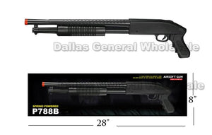 LoginCheap bulk wholesale of airsoft BB shot guns. These toy BB machine shot guns are high in quality; designed with machine gun like exterior. These bb airsoft shot guns recommended for ages 18 & up. Do not shot at animal or human. These bb shot gun rifes are featured high quality spring and large box display. Tip is designed with the red or orange to distinguish between toy guns and real guns.