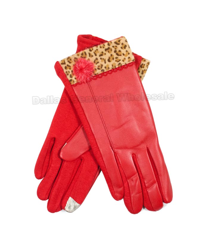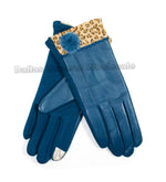 Cheap bulk wholesale of women's high quality insulated fashion faux leather gloves. These ladies fashion faux soft leather gloves are soft and warm to skin. These beautiful designed ladies gloves are featured with furry pom pom ball design around the wrist cuffs with classy cheetah prints. Insulated fleece interior for added warmth in the cold Winter seasons. These ladies fashion gloves are slim designed; a perfect lady look for the Winter; stock up on these ladies fashion gloves now for the Winter!