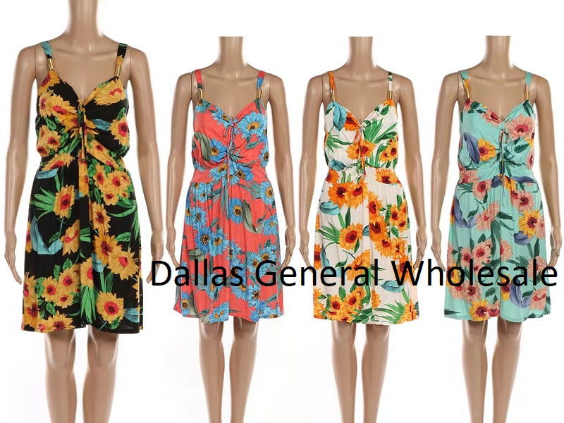 Cute Elastic Sunflower Sun Dresses Wholesale
