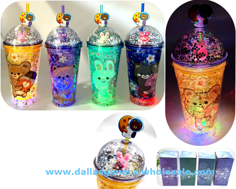 Flashing Light Up Bear Cups w/ Straw Wholesale