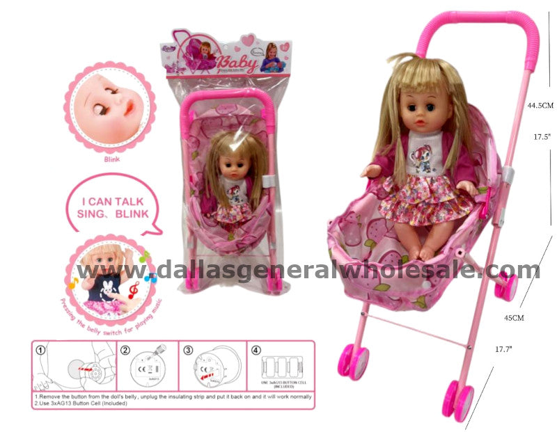 LoginThe perfect gift for your little girl - a talking baby doll set with a foldable metal bed stroller! This bulk wholesale set includes a durable metal frame, 4 wheels, and a cute baby doll that talks, sings, and blinks. Give your child hours of fun and imagination with this adorable playset. Stock up now! Cheapest wholesale prices across the web!