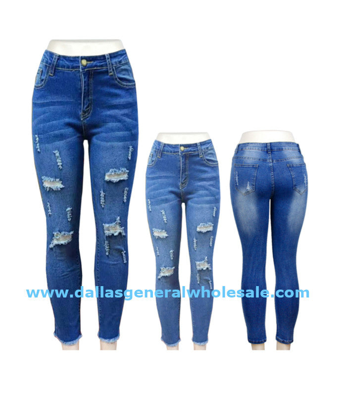 Butt Lifting Distress Denim Skinny Jeans Wholesale