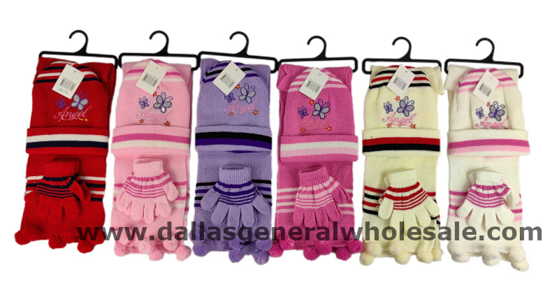 LoginLittle girls 3-piece winter beanie gloves and scarf set is available in bulk wholesale. These double-knitted beanies feature an adorable butterfly stitched onto the cap, and a scarf with fringes for extra warmth and color. Perfect for chilly winters, this set is sure to keep your little one cozy. Available in six vibrant colors.