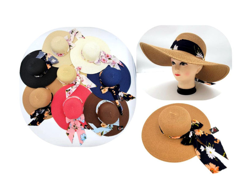 Beach Floppy Straw Hats with Floral Hatband Wholesale