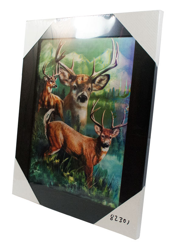 Cheap bulk wholesale of 3D picture of rain deer with frames. 3 different images of rain deer and deer will appear when looking at the frame from different angle. The pictures shown are pictures of the same frame. Frame is included. Beautifully designed 3D wall decoration frame. Images are as show in the photos.