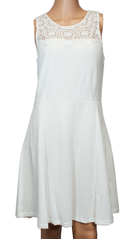 Cheap bulk wholesale of girls' sleeveless fashion semi formal dresses. These ladies dresses are featured with crochet lace top, solid colors, fit waist, flare bottom and very nice cuts and designs. These ladies or juniors' dresses are perfect for an evening out , dinner party, church wear or a date night.