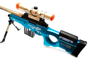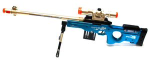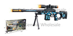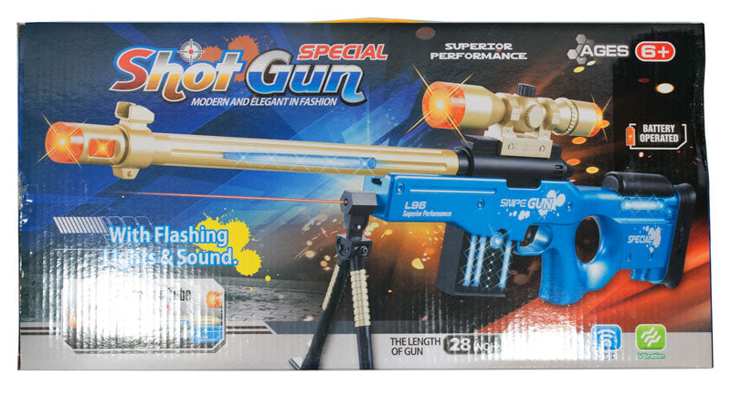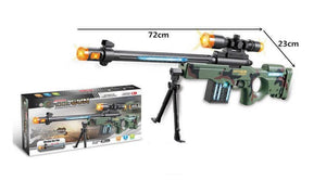 Cheap bulk wholesale of children's battery operated toy sniper shot gun; rifle with lights and sounds and vibrates when trigger is pulled.
