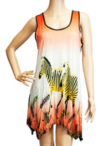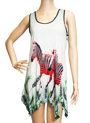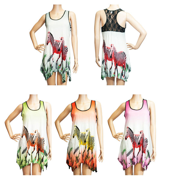 Cheap bulk wholesale of Women's Summer Fashion Apparel; Tunic Sleeveless Ladies Tops or blouses with zebra prints. These Women's Sleeveless Blouses are gorgeous with vivid colors. These Women's Blouses are designed with two zebras in the front of the blouses, the back of these girls' Sleeve blouses are lace designed; perfect for the summer hot weather. These Women's Tunic Tops will go perfectly with either shorts, jeans or leggings. These Printed Women's Fashion Tops are available in colors as shown in the photo, with laced back.Colors and sizes will be assorted randomly in a dozen. This wholesale of women's fashion blouses are top of the line quality, a must have item to add to your inventory this summer!