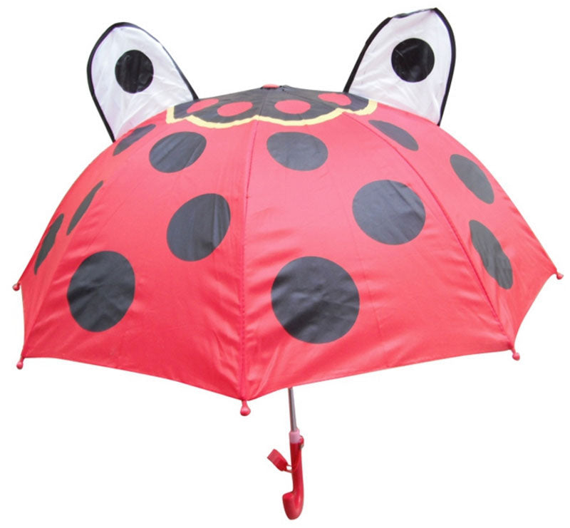 These Red Ladybug Deigned Umbrellas with ears are automatic, easy click open technique with 8 umbrella ribs for durability. A whistle is also attached to the end of each umbrella handle for added fun.