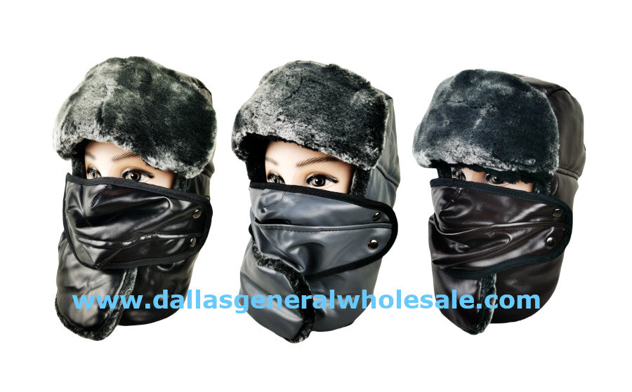 • Men Faux Leather Fur Bomber Aviator Hats with Removable Mask Wholesale