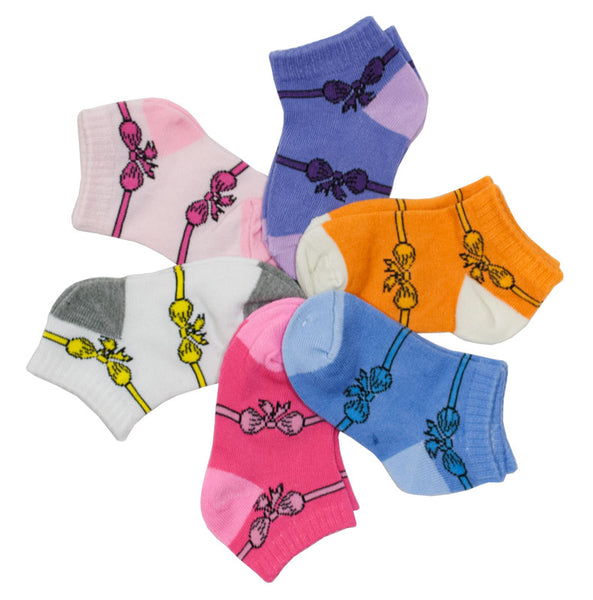 LoginBulk wholesale of Little Girl's ankle cotton socks in adorable little bow prints. These kids cotton socks are perfect selection for every day wear for the little girls, also may be ideal for school uniforms. These little girls cotton ankle socks are comfortable fit with assorted colors.