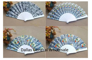 LoginCheap bulk wholesale of various dollar bill painted hand held folding fans. These oriental style hand held folding fans are very competitively priced and a great item for your flea market vendors, general merchandise store, dollar store or any convenience store. These folding fans are printed with realistic American dollar designs. These novelty folding hand fans can be used as the perfect party gift, or any functional gift party favors; events such as reception, banquet, prom, birthday parties, family reunions, picnics or any other events. These soft cloth folding fans are not only decorative but also functional, let these folding hand fans take off some of the summer heat!