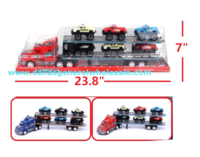 • Little Kids big 25" long inertia 18 wheeler commercial trucks with 4 race cars gift set wholesale