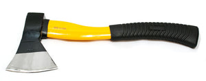 LoginCheap bulk wholesale of high quality 14" long steel axe. This ax is featured with ergonomic non-slippery grip, and drop-forged carbon-steel axe head. This ax is ideal to keep with you during your camping trip or work in your back yard.
