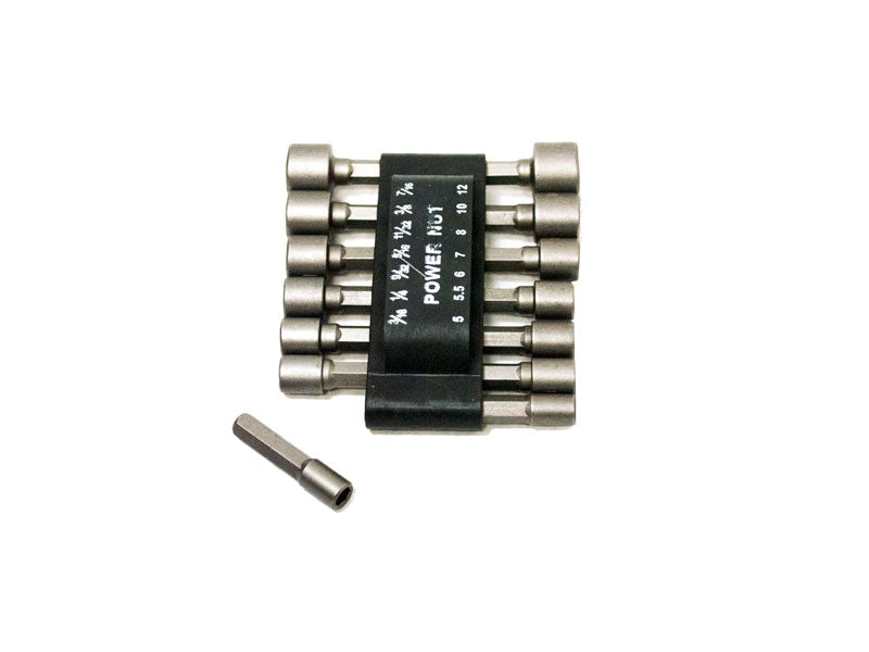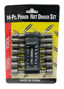 14-Piece Power Nut Driver Bit Set is a must-have addition to any tool box. This power nut driver bit set features sandblasted, chrome vanadium steel, precision-milled, 1/4"-hex shanks that are made to fit all power drills, screwguns, and both cordless and magnetic screwdrivers.