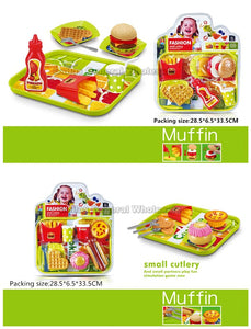LoginCheap bulk wholesale of little kids pretend play hamburger lunch tray play set. This adorable set of burger consists realistic burgers, fries, drinks, condiments, ties, hot dogs, cake, cookies, silverware etc. This set of hamburger shop play set is great for hands on early education. The cash register opens and closes.