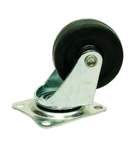 The 2 inches Rubber Wheel Swivel Plate Caster gives mobility to light furniture on surfaces where quiet movement and floor protection are vital. It features a 125 lb. load rating and can swivel 360-degrees. The caster attaches easily with a 2-1/4 in. x 1-3/4 in. plate and 4 screws. (screws not included)