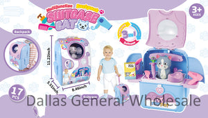 LoginWholesale little girls cute fold-able pet kitty carrier play set. This adorable pet cat carrier can be turned into a backpack, or suitcase. Toys can be stored and put in a luggage and can be folded up into a pet care stand. This set of pet kitty play set features with adorable designs.