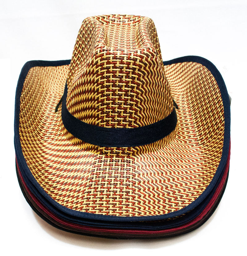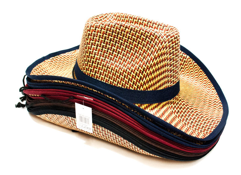 Cheap bulk wholesale of assorted colors summer vented straw unisex cowboy hats are very competitively priced and are a very popular seller. This Classic looking summer Cowboy hat will be a great addition to your general merchandise store, caps or hats store, novelty store or flea market vendors. These Cowboy hats are a classic design with solid color hat bands. These Assorted Mesh Cowboy Hats are featured with wide brims all around to make this hat a great buy in the summer time. This Mesh Cowboy Hat will for sure keep the sun off your face while still let you look fashionable and in style.
