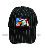 Bulk wholesale of men's and women's fashion casual baseball caps with bold 3D stitches of an image of a head of a bald eagle with the USA flag as the background. The outline of an eagle is beautifully stitched on the background on the cap. These casual horse caps feature a Velcro strap in the back for easy size adjustments. These casual baseball caps are high quality cotton and quality stitches. These baseballs caps are feature Velcro straps in the back making this cap one size fits most. These casual baseball caps are unisex. These casual caps are fashionable and perfect to show your love for fishing