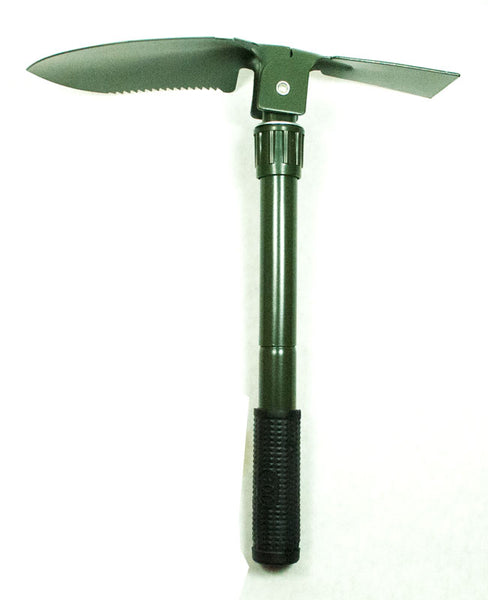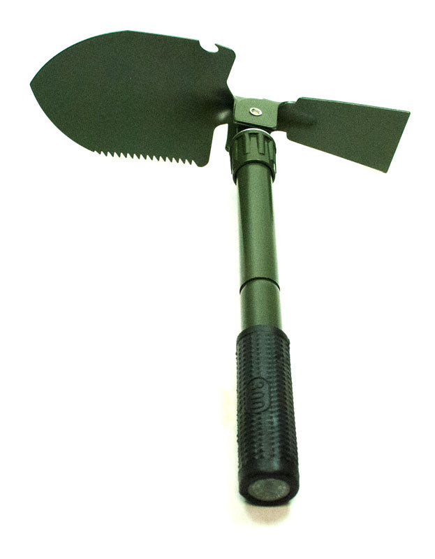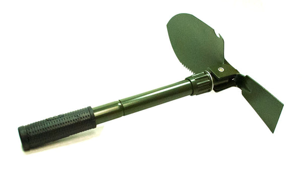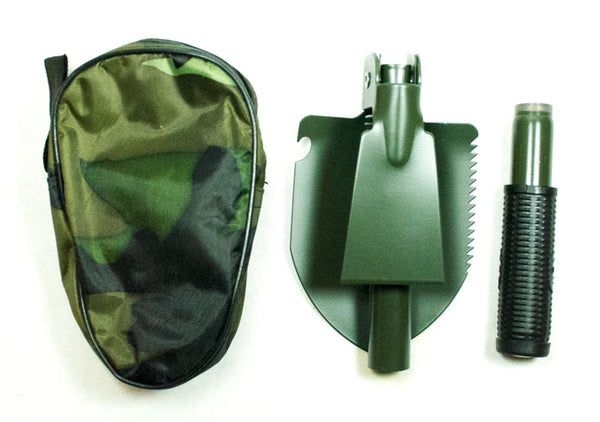 This Multi-functional Foldable shovel is an army style shovel that can be great to bring with you on your camping trips,fishing trips or any outdoor activities. A multi-functional tool that does all of the job for you during your outdoor camping activities, it can be used as shovel, dibble pick, saw or bottle opener. This Army Style Foldable Camping Shovel is made with hardened steel with a durable green finish. Rubber grip at the end of the handle strengthens your grip and increase comfort level. It is a new product that is build to withstand heavy abuse during the most rough ground condition. It is equipped with serrated edges for cutting through roots and tough ground. A wide angled snow spade is also equipped for more scrapping or digging. You can keep a set in your home for as your gardening shovel or perfect to bring with you if you like the outdoor surviving scene.