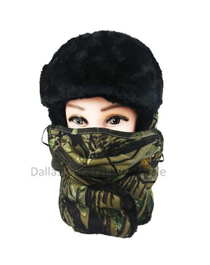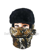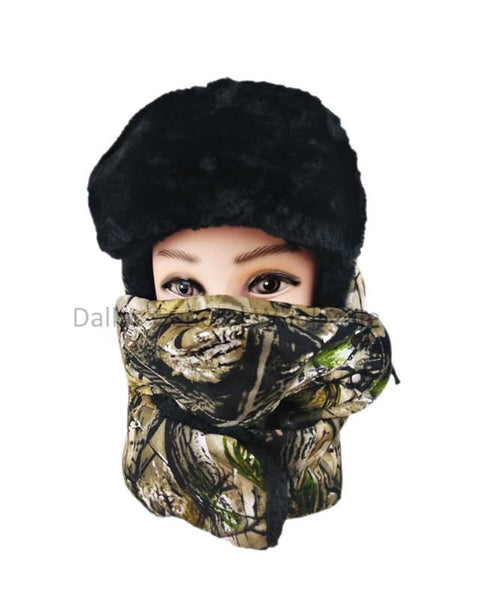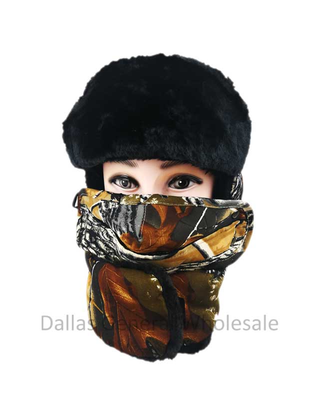LoginCheap bulk wholesale of adult's winter casual head gear. These camouflage printed faux fur bomber aviator hats are classic designs with new and improved removable masks. These camouflage bomber hats are featured with Velcro straps on the flaps to enable closing in around the neck and chin for extra warmth. The removable masks are also a great feature. You may wear the masks inside or out of the hat. The masks provides for extra protection for your face during the cold Winter wind. These bomber hunting hats with removable mask are unisex, suitable for both men and women, These men or women's faux fur bomber hats are very popular; a great item to stock up this winter season in your hats / caps store or any other boutique shops.