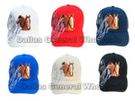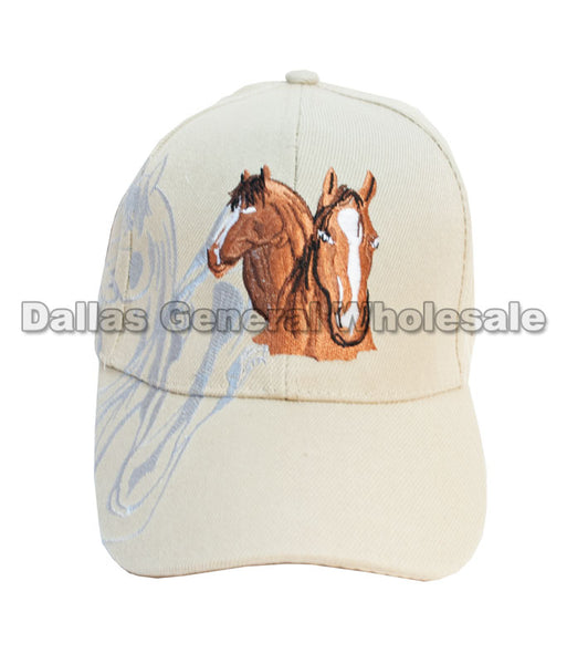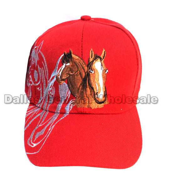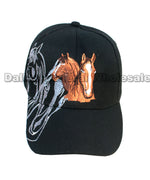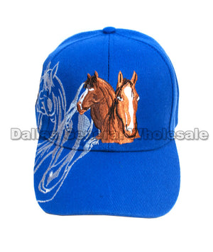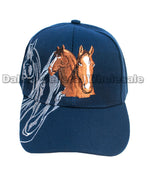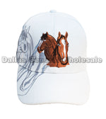 Bulk wholesale of men's and women's fashion casual baseball caps with bold 3D stitches of an image of two horses. The outline of two horses is beautifully stitched on the background on the cap. These casual horse caps feature a Velcro strap in the back for easy size adjustments. These casual baseball caps are high quality cotton and quality stitches. These baseballs caps are feature Velcro straps in the back making this cap one size fits most. These casual baseball caps are unisex. These casual caps are fashionable and perfect to show your love for fishing