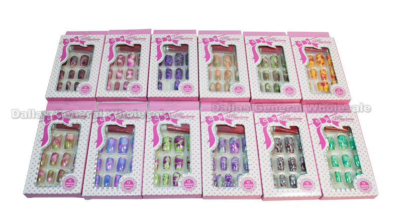 LoginCheap bulk wholesale of fashion fake nail art set. Each nail art set includes 12 pieces of fake nails and a glue. These false nails are pre-designed with pretty air brushed colors; assorted colors. 12 different fun and pretty designs assorted. Designs may vary.
