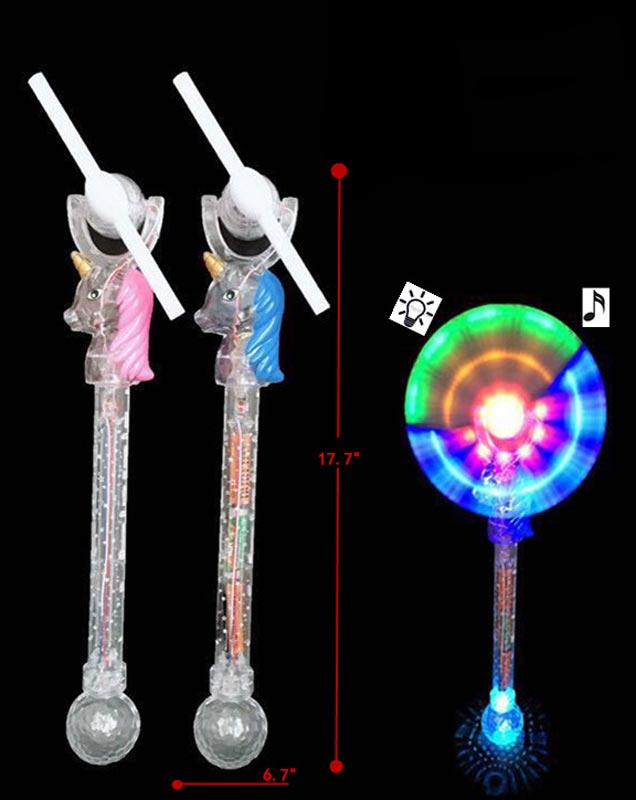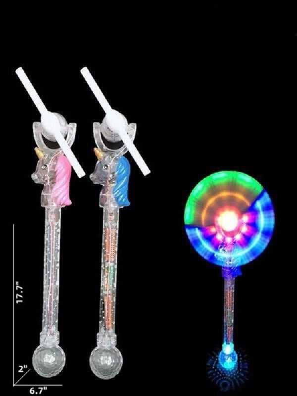 LoginCheap bulk wholesale of assorted colors of flashing light up windmill wands with unicorn design. Flashing multi color lights. Color of lights include, red, blue,yellow,green and etc. On/Off Switch Buttons are on the side of the wand handle. Glowing in dark wind mill wand is a great idea for party favors and is a great item to add to your toy store, novelty gift shop, carnival events or any general merchandise store. These flashing wind mills with unicorns are perfect for night time music festivals also.