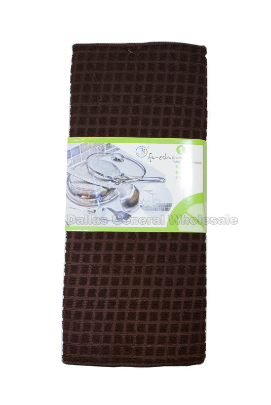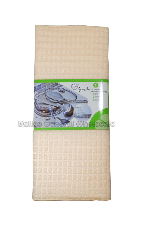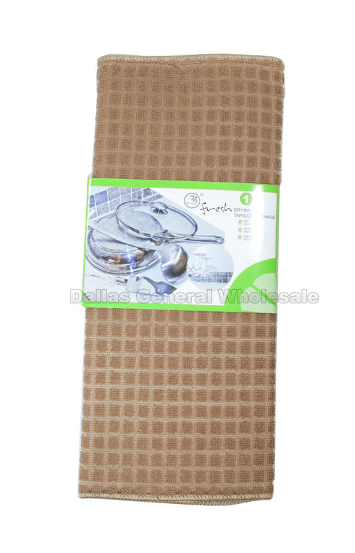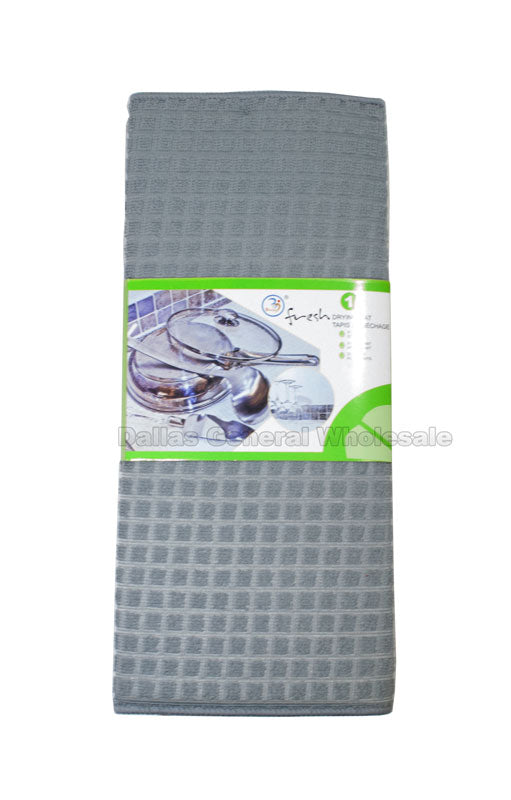 Cheap bulk wholesale of large drying mats. These drying mats are super absorbent. These microfiber drying mats are designed to protect your counter top, dishes and glasses. These drying mats fold for easy storage with a hanging loop for easy storage and drying. These drying mats are machine washable and drys quickly. Stock up on these solid color drying mats today!