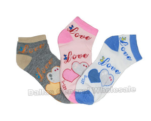 LoginBulk wholesale of women's cute love and hearts printed casual ankle socks. These cute designed ankle casual socks are great for ladies, or young girls. These women's casual socks are perfect for everyday wear or sports wear. These ladies cotton socks are designed with elastic cuffs and printed with pretty flowers and cute polka dots.
