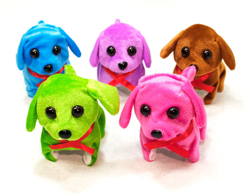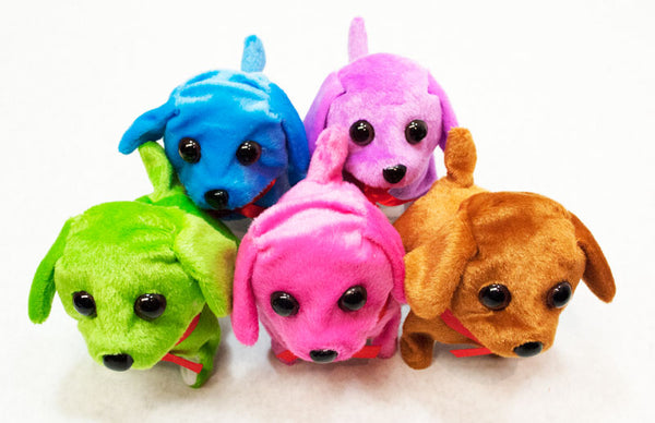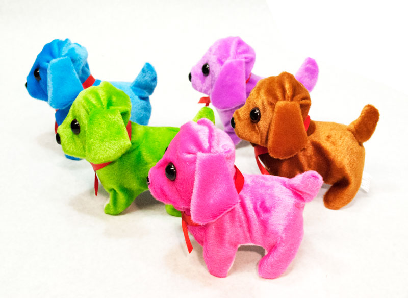 Cheap bulk wholesale of battery operated toy fluffy realistic puppy dogs. These fluffy animals are assorted in colors; realistic in design. These toy battery operated puppy dogs walks back and forth and barks realistically. These toy dogs eyes will light up as they walk around. Endless fun for children.