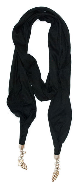 Cheap bulk wholesale of women's Spring or Fall fashion casual sheer jewelry scarves. These girls' sheer spring fashion scarfs are soft to the skin and beautifully designed with assorted colors and pretty silver grapes designed pendants at each end of the scarf. These ladies fashion sheer spring or early fall scarfs are featured with assorted colors. (Please refer to photos.)