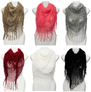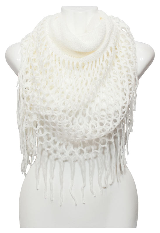 Cheap bulk wholesale of women's knitted infinity circle scarf with fringes for winter or cold seasons. These girls' winter infinity circle fashion scarfs are warm and super soft & comfortable to the skin. These ladies winter fashion infinity circle scarves are featured with solid colors. (Please refer to photos for the colors.)
