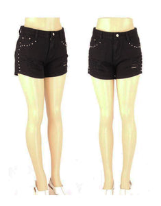 LoginCheap bulk wholesale ladies Summer fashion apparels; destruction style denim shorts. These girls jean shorts are edgy in design, comfortable to wear. These jean denim shorts are appropriate for women all ages. These denim jeans shorts are designed with metal studs all round the sides; trendy look. Stock up on these boutique store jean shorts today!