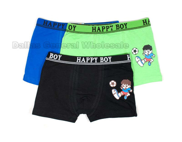 LoginCheap bulk wholesale of little boys quality everyday boxer briefs. This little boys boxer briefs comes in assorted colors with cute soccer prints. These little boys boxer briefs are made with quality cotton. Great selection to add to your current inventory!