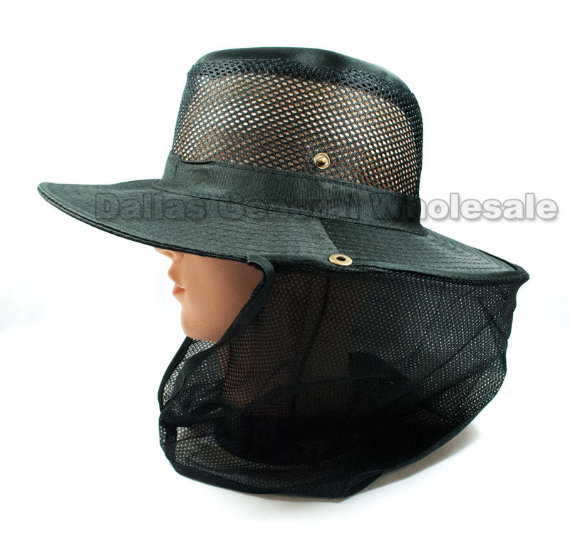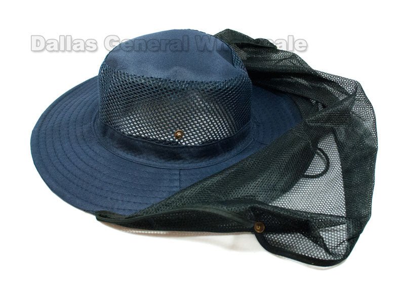 - Adults Summer Vented Mesh Solid Colors Foldable Fishing Boonie Bucket Hats with Vented Neck Flap Cover Wholesale