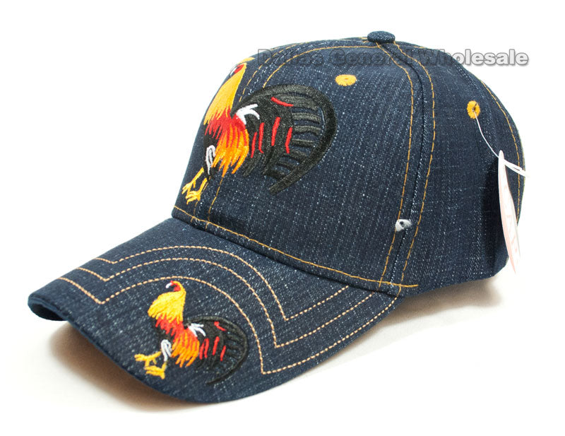 LoginCheap bulk wholesale of men's casual denim baseball caps with bold stitches of image of 2 roosters and "Cock Fight" along the side of the cap visor. These adults casual jeans or denim baseball caps are high quality cotton and quality stitches. Giant image of 2 cocks stitched at the side of the cap visor also. A beautiful faux leather patch stitched with the phrase "Cock Fight". These denim casual caps are feature Velcro straps in the back making this cap one size fits most.