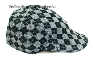 Cheap bulk wholesale of men's fashion Early Winter / Fall wool designed newsboy caps. These men's fashion newsboy caps are available in grey, white, black checkered prints. These men's wool Newsboy Hats are classic design. These men's fashion wool newsboy hats are great for Early Winter and Fall head gears. Stock up on these men's high quality newsboy caps today!
