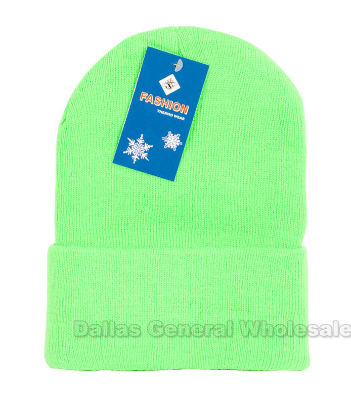 Cheap bulk wholesale of winter double knitted solid neon color beanies for men, women and teens. These solid color beanie caps are classic and always in style to keep head and ears warm during the cold winter seasons. These knitted winter trendy beanie caps are featured with bright fun neon colors; added a little bit of color to Winter.