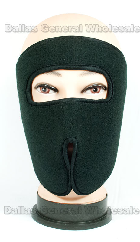 Cheap bulk wholesale of adults or teen's winter fleece face masks. These Winter fleece masks are featured with 1 ventilation hole for eyes and 1 ventilation hole for the mouth. These men or ladies fleece face masks are easy to wear with a Velcro strap in the back to tighten, it is the easiest and most economical way to keep faces from the cold Winter wind as well as the air pollution.