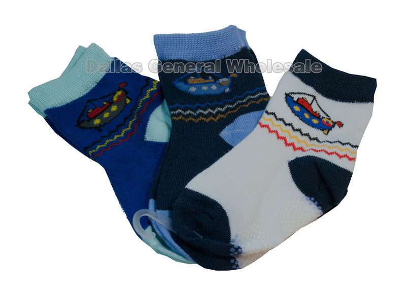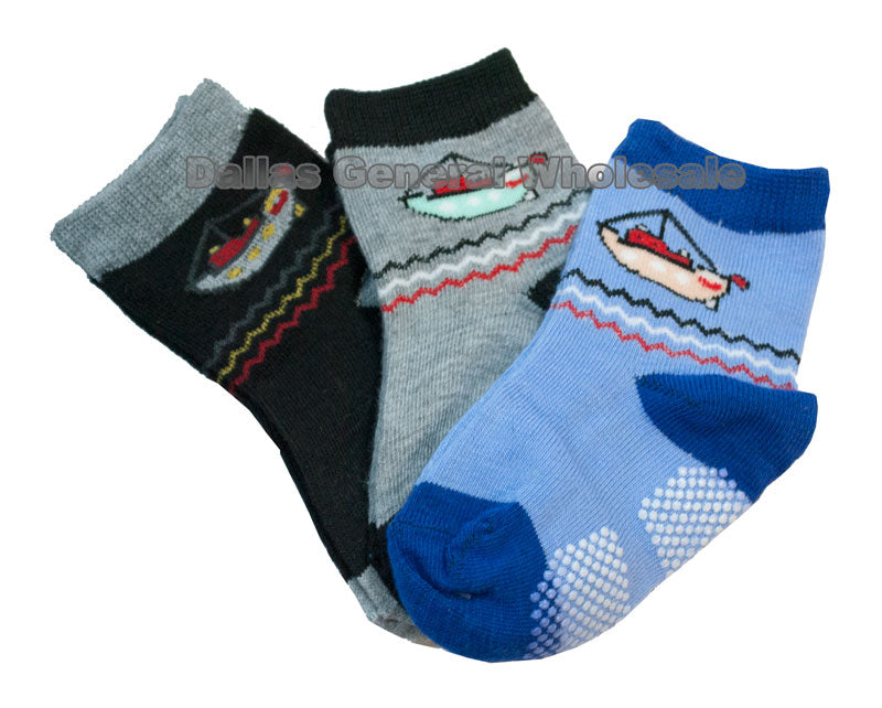 LoginCheap bulk wholesale of toddler boys cute carton boats designed casual ankle socks. These toddler casual ankle socks are super comfortable and amazingly cheap priced to add to your current inventories. These cute socks are from size 2-4 for toddler boys, with rubber grips so they do not slip when walking. These adorable baby socks are available in fun colors and is made with high quality cotton. Stock up on these little boys' everyday casual ankle socks today!