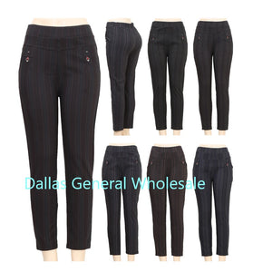 Women's elegant trousers wholesale. These trousers are great for Summer, Spring and Early Fall. These trousers are light weight and fitted design. Fashionable and comfortable trousers for every working female. These trousers are designed with vertical lines; elongates your figure. Stock up on these women's pull on pants today!