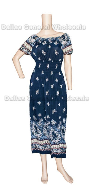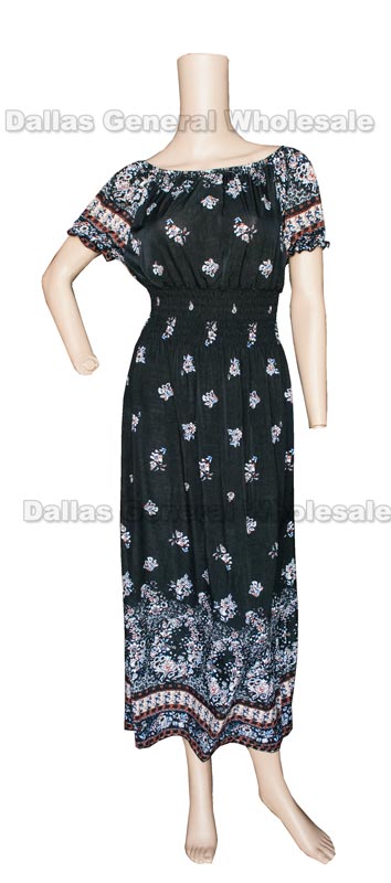 - Ladies Summer Fashion Apparel Beautifully Printed Straight Shoulder Maxi Sun Dress Wholesale